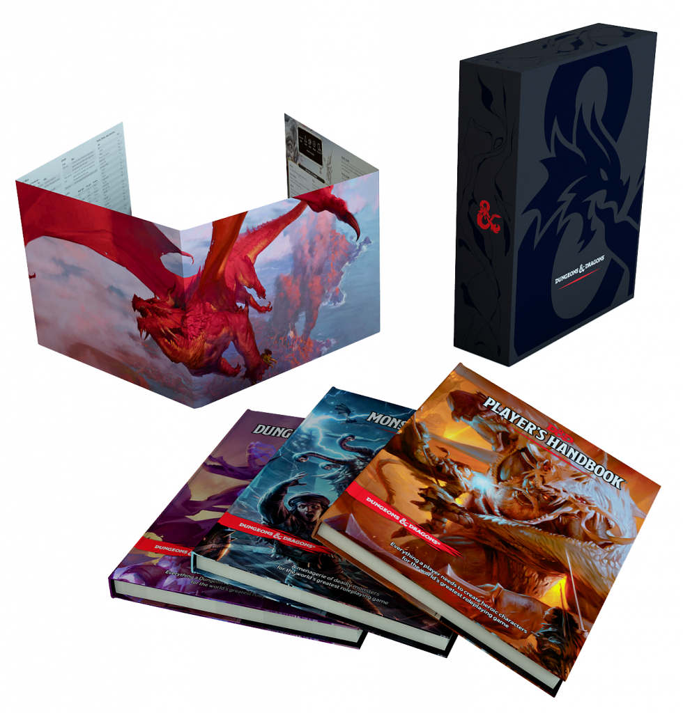Zusätzlich zu den drei unentbehrlichen Regelbüchern enthält dieses Set einen Spielleiterschirm. Dieser Schirm hilft dem SL, seine Notizen und Würfelwürfe vor den Spielern zu verbergen. Außerdem enthält er viele Informationen, die schnell nachgeschaut werden können, damit das Spiel reibungslos abläuft.