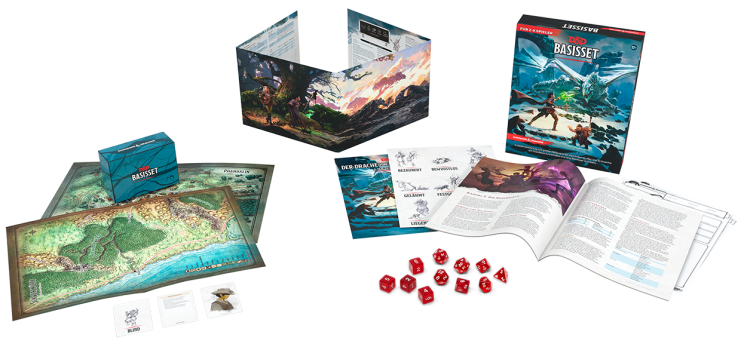 Diese Box enthält die wichtigsten Grundlagen, die du für ein D&D-Spiel mit einem Spielleiter und bis zu fünf Abenteurern brauchst. Ein neu gestaltetes Regelbuch erklärt den Spielern, wie sie Charaktere erstellen, und das beiliegende Abenteuer Dragon of Icespire Peak führt eine neue 1-plus-1-Regelvariante ein.