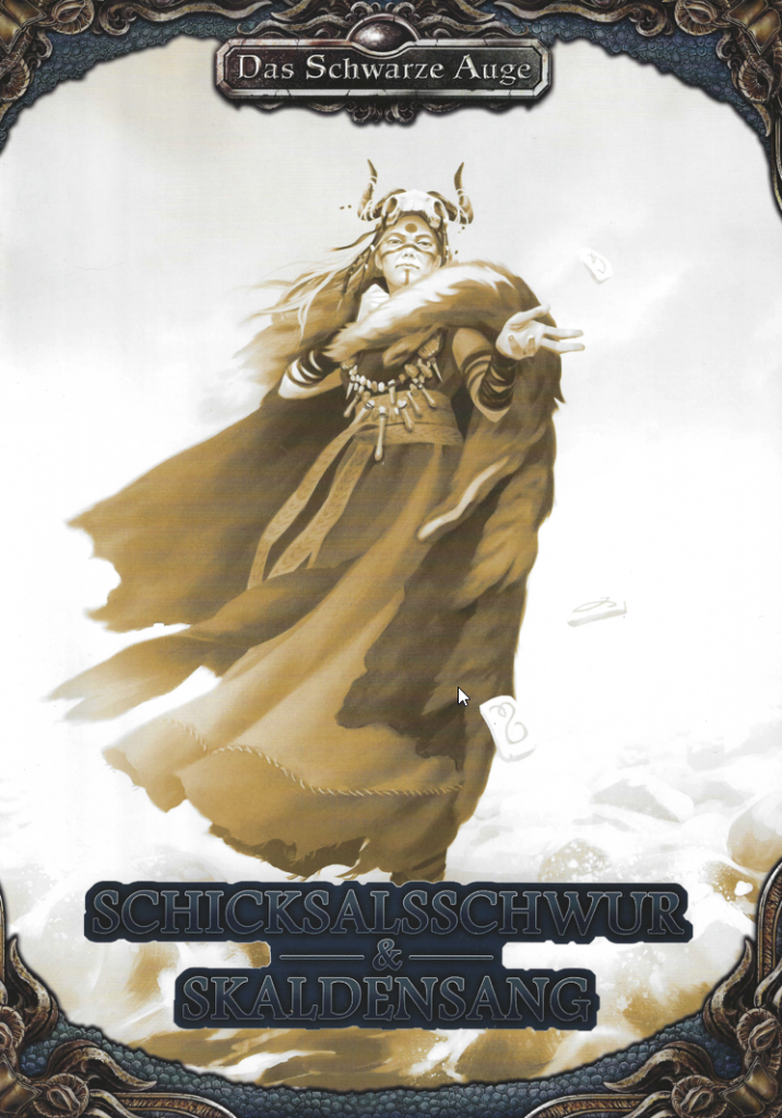 Schicksalsschwur & Skaldensang ist eine Spielhilfe für Die Gestade des Gottwals – Thorwal & das Gjalskerland und bietet auf 48 Seiten eine Fülle an Spielmaterial für spannende Abenteuer im von Wind und Gischt umtosten Nordwesten Aventuriens: 3 Kurzabenteuer und mehrere Spielhilfen, darunter eine typische Ottaskin, inneraventurische Legenden der Gjalsker, Spielhilfen zu Godi, Skalden, sowie der Sprache der Thorwaler und Gjalsker mit jeweils einem ausführlichen Sprachglossar.